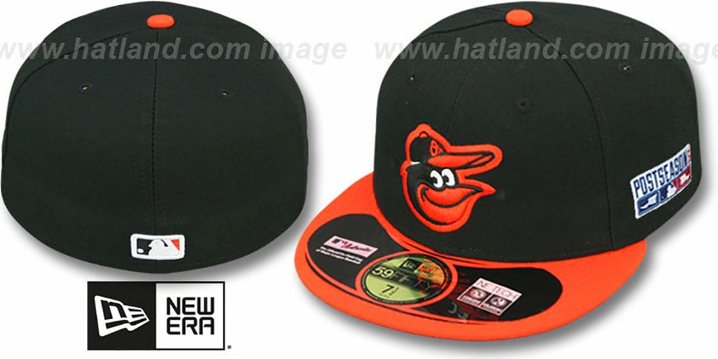 2014 Onfield Playoff hat worn during the postseason games Authentic Collection and ORIGINAL 59FIFTY fitted 100% performance polyester hat by New Era, black deep crown and orange visor, black undervisor, embroidered team logo on front, embroidered 2014 POSTSEASON patch on side, MLB logo on back