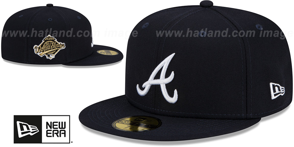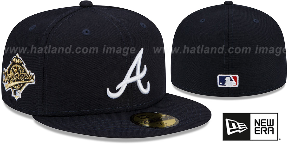 Excite your game day look with this authentic 59Fifty fitted cap from New Era! Crafted in dark navy blue, this cap features a poly crown and visor, a light grey undervisor, and a black sweatband. The front showcases a raised, embroidered team logo, while the side displays an embroidered 1995 World Series patch. The opposite side boasts an embroidered New Era logo, and the back sports a matching, raised MLB logo. This is a must-have for any devoted fan